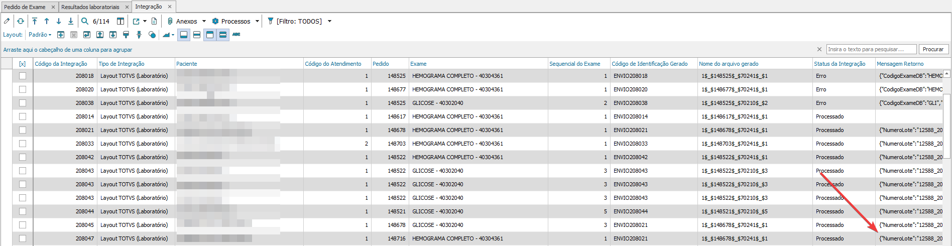 Com essas configurações o sistema está apto para realizar o envio de exames laboratoriais no layout TOTVS.