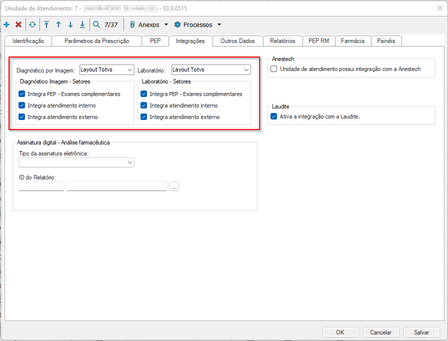 A configuração de Integração é dependente do tipo da Unidade de Atendimento. Ou seja, se a unidade for de Laboratório e a integração estiver configurado como Layout TOTVS para Diagnóstico de Imagem, a integração não será realizada.