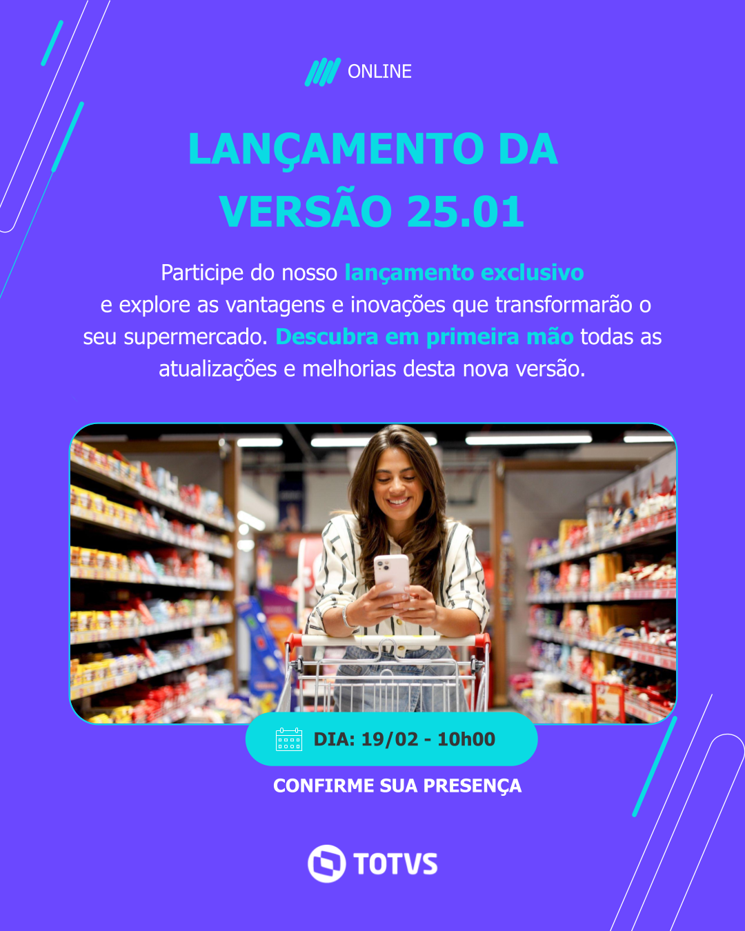 Reservamos 4 encontros para que você descubra a importância de adquirir ou atualizar para a versão TOTVS Varejo Supermercados 25.01.