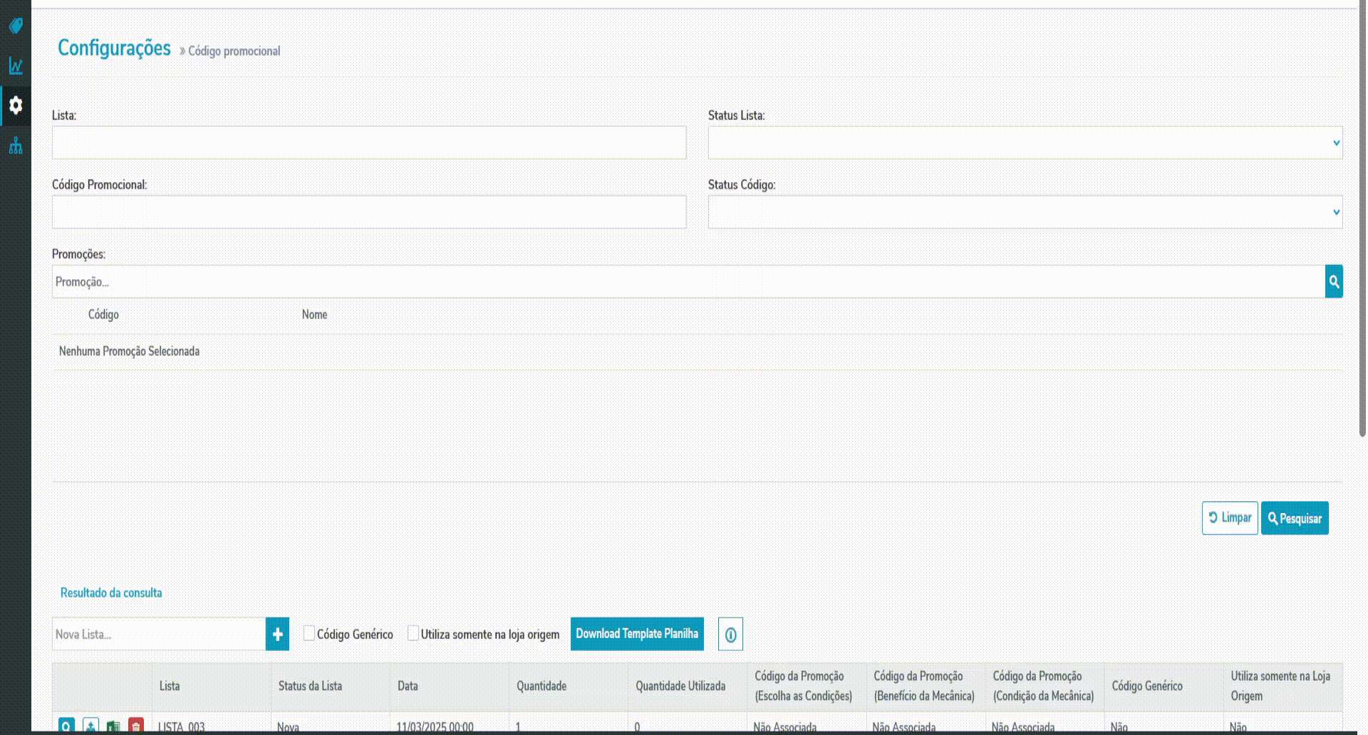 Não permitir o cadastro de lista de código promocional sem nome ou com nome existente.