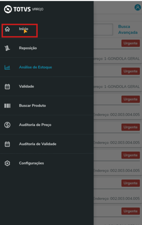 O usuário também pode acessar a tela inicial através do menu lateral.