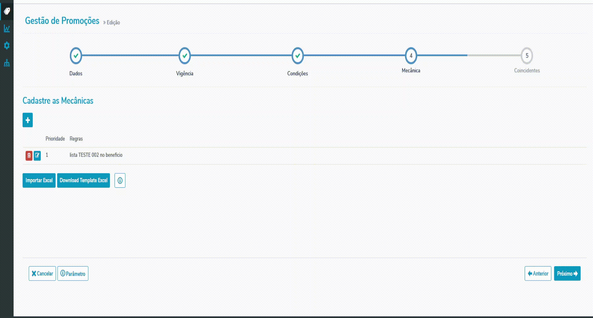 | Função: | Utilização de lista de código promocional em uma promoção |