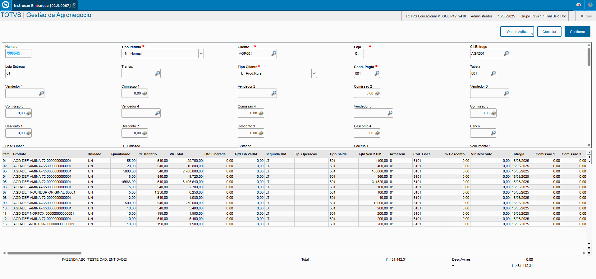 A partir de uma negociação, o próximo passo é gerar uma instrução de embarque, que tem como objetivo conter parcial ou de forma total, os insumos a serem entregues pela empresa ao comprador , otimizando o processo de expedição, carregamento e transporte. Esse agrupamento permite maior controle logístico, eficiência operacional e melhor organização na entrega dos produtos ao cliente.