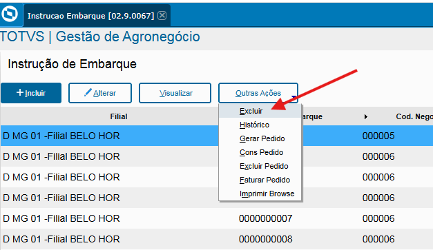 Permite excluir um Pedido de Vendas a partir de uma Instrução de Embarque que ainda não tenha sido faturado.
