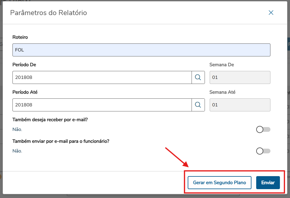 Por fim, temos a opção de "Enviar" ou "Gerar em Segundo Plano".