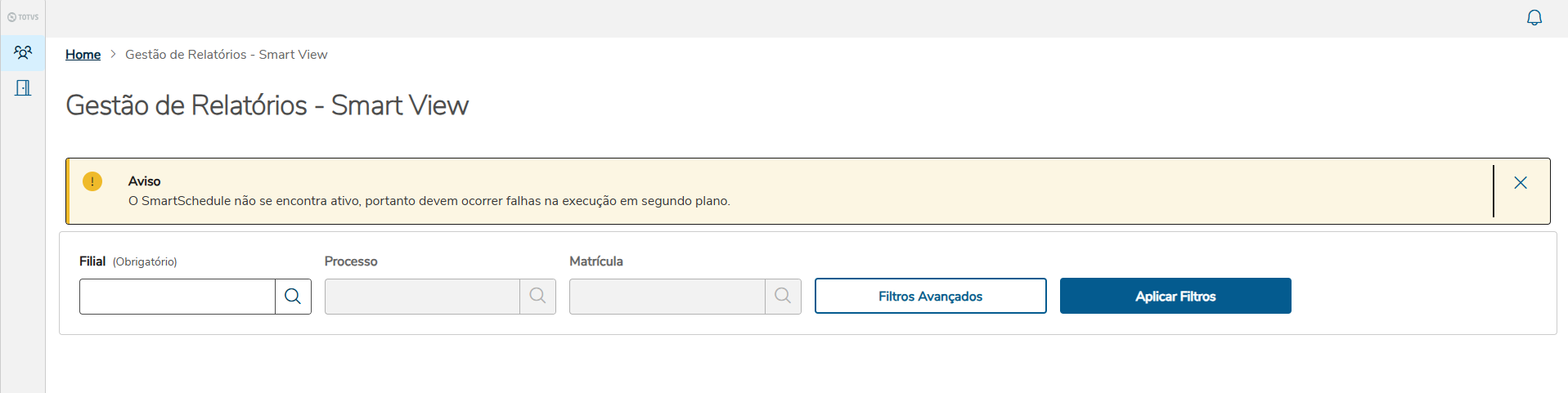 Importante: A geração em segundo plano só deve funcionar caso o Smart Schedule esteja rodando. Caso contrário é mostrada a mensagem abaixo ao acessar a rotina.