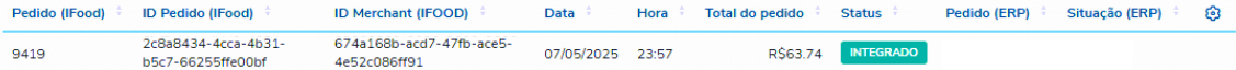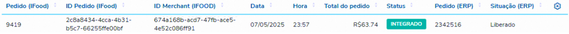 Nesta consulta recebemos informações limitadas do iFood, dessa forma essa consulta no painel de monitoramento reflete da seguinte forma: