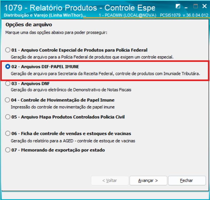 Ao tentar gerar o relatório "02 - Arquivos DIF-PAPEL IMUNE" ocorre a seguinte mensagem: verificar acesso ao disco. Arquivo não pode ser gravado.