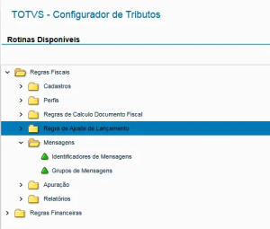 Foram criadas as tabelas e os programas necessários para o cadastro dos Identificadores de Mensagens e Grupos de Mensagens no Configurador de Tributos.