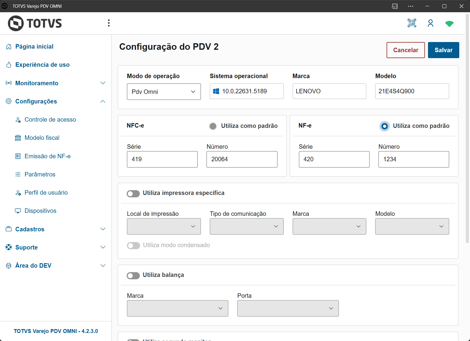 Permitir selecionar o modelo fiscal padrão de emissão entre NFCe ou NFe no cadastro do dispositivo