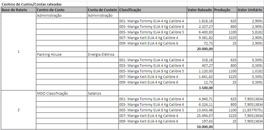 Valor Unitário = Valor Rateado / Produção.