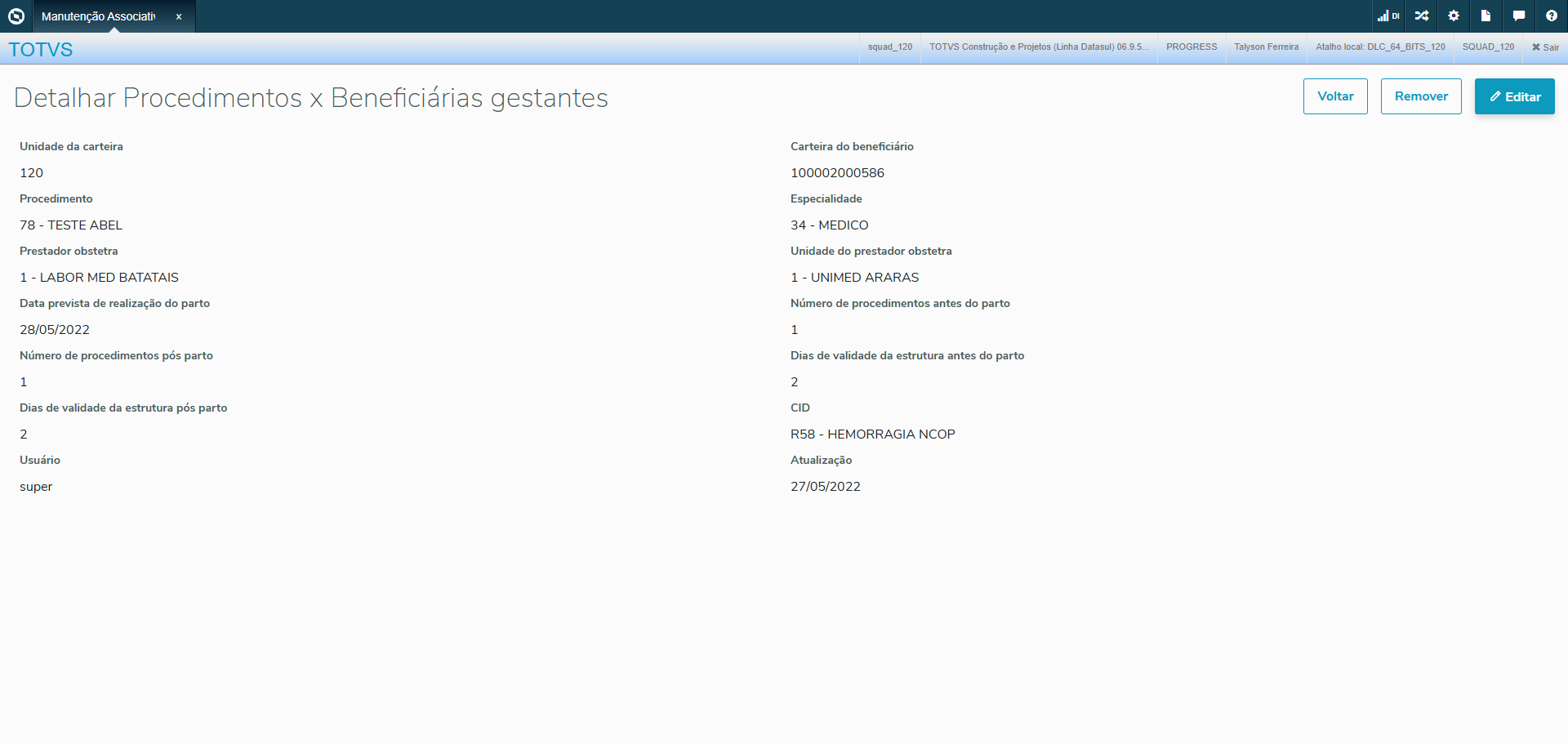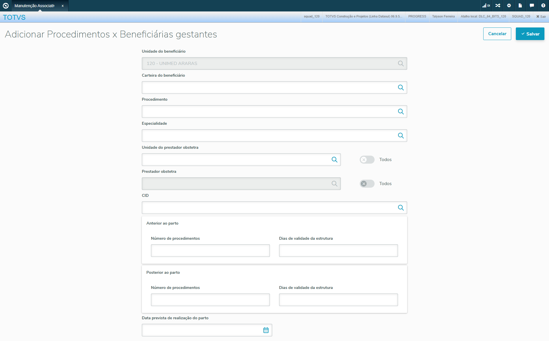 Este programa permite definir dados referentes a procedimentos obstétricos.