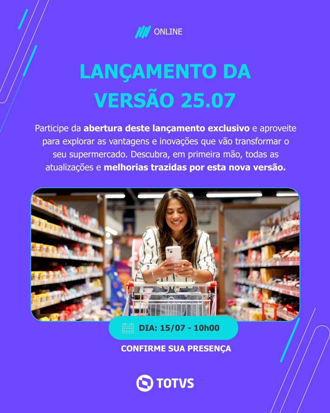 Participe do lançamento exclusivo da mais nova versão desenvolvida especialmente para o setor supermercadista. Neste evento, você terá a oportunidade de conhecer em primeira mão todas as atualizações, inovações e melhorias que vão transformar a gestão do seu negócio.