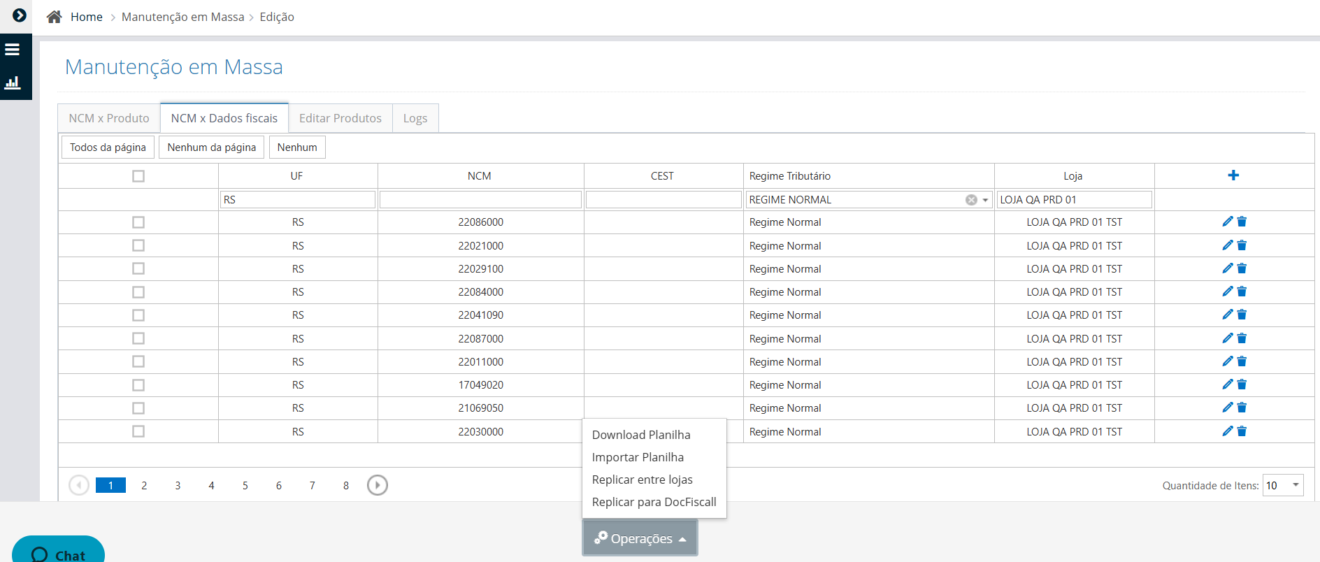 O cadastro das regras fiscais pode ser feito pela tela de Manutenção em Massa, tendo a opção de replicar para o DOCFiscal a regra cadastrada no NCMX Dados Fiscais.