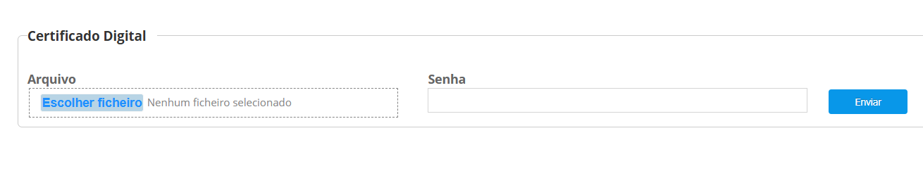 Após o envio da empresa, será solicitado o certificado digital. Realize o processo.