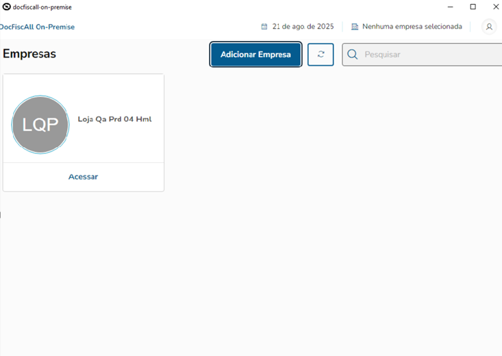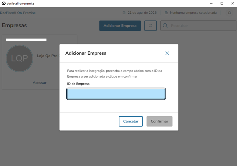 Se a empresa não aparecer no painel, clique no botão Adicionar Empresa e informe o IDEmpresa que é gerado após o cadastro da loja no DocFiscall.