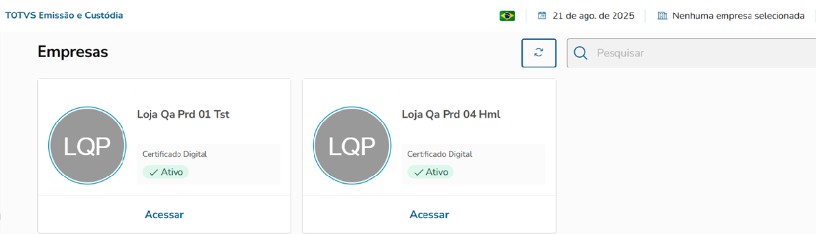 Selecione a empresa criada clicando em Acessar.