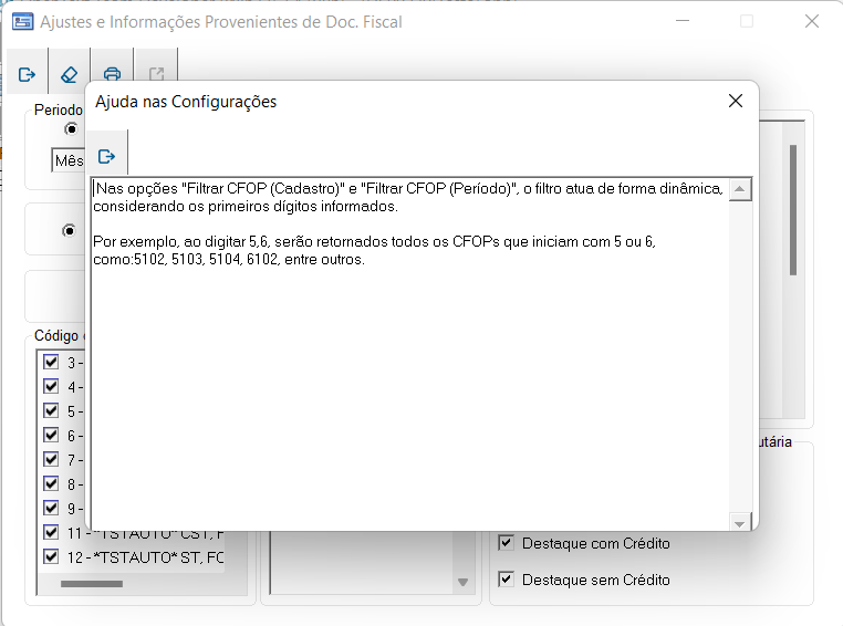 Imagem 2 - Ajuda com o funcionamento dos Filtros de CFOP