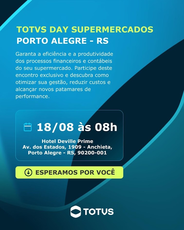 No dia 18 de agosto, um dia antes da EXPOAGAS, realizaremos o TOTVS Day Supermercados – Porto Alegre/RS: