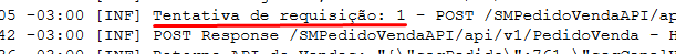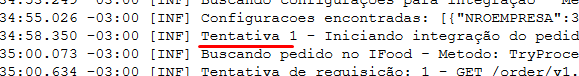 A quantidade de tentativas e o fluxo de integração poderão ser acompanhados no LOG em texto através da seguinte informação:
