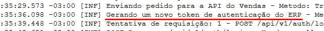 A autenticação na API Pedido de Venda pode ser acompanhada no LOG em texto através da seguinte informação: