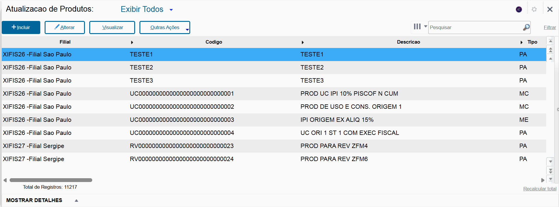 Assim como os demais cadastros, não existe uma regra a ser seguida e o cliente poderá cadastrar com a descrição que desejar.