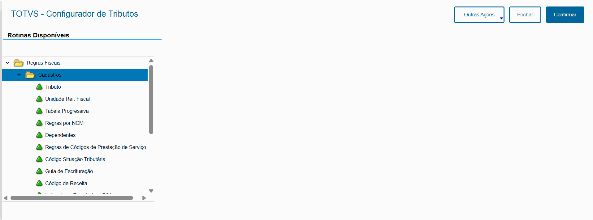 Através desta rotina é possível configurar tributos que necessitam MVA, Pauta, Majoração ou Alíquota do Tributo que precise de separação das alíquotas dos tributos por UF origem e/ou UF destino.