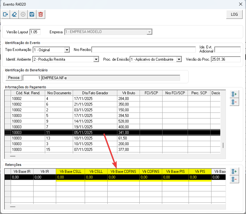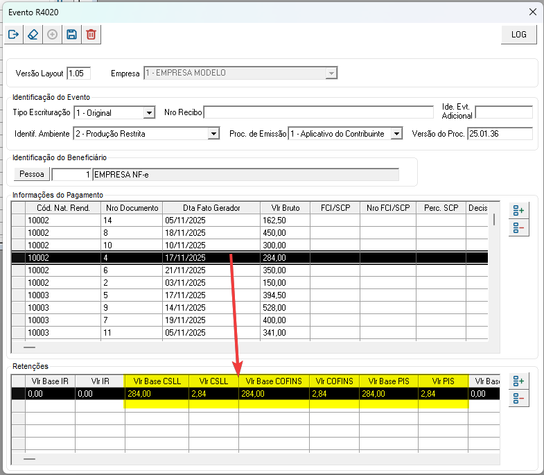 Foi identificado que anteriormente, a geração das informações nos grupos de pagamentos e retenções estava, em alguns casos, condicionada à existência de imposto retido, no registro R-4020.