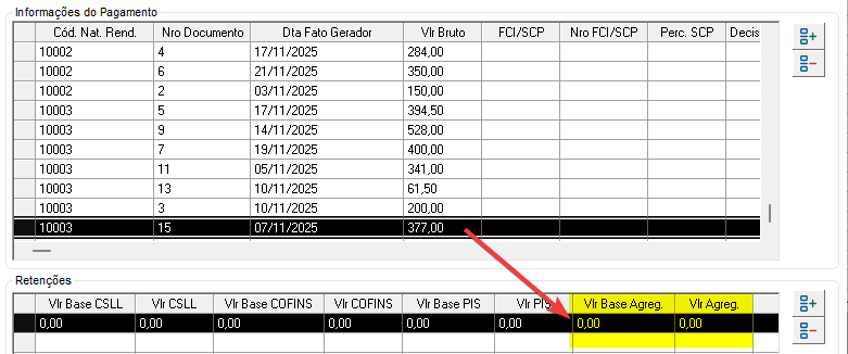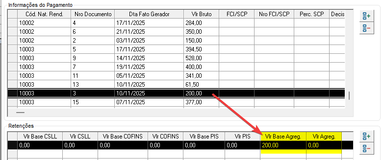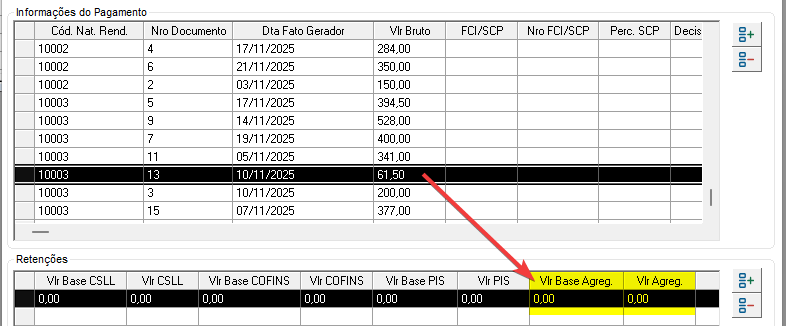 Imagem 09: Título com a coluna valor de Base Agregada PIS/COFINS/CSLL zerado