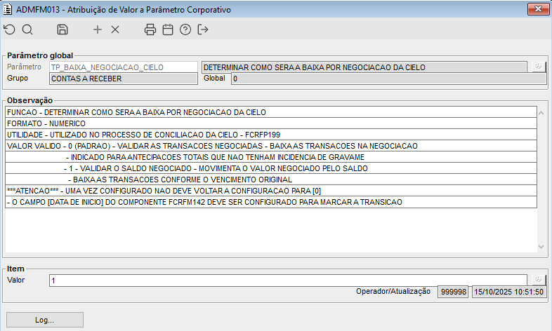 Com o novo parâmetro configurado com o valor 0, será realizada a validação das transações negociadas, ou seja, baixa as transações na negociação (Indicado para antecipações totais que não tenham incidência de gravame).