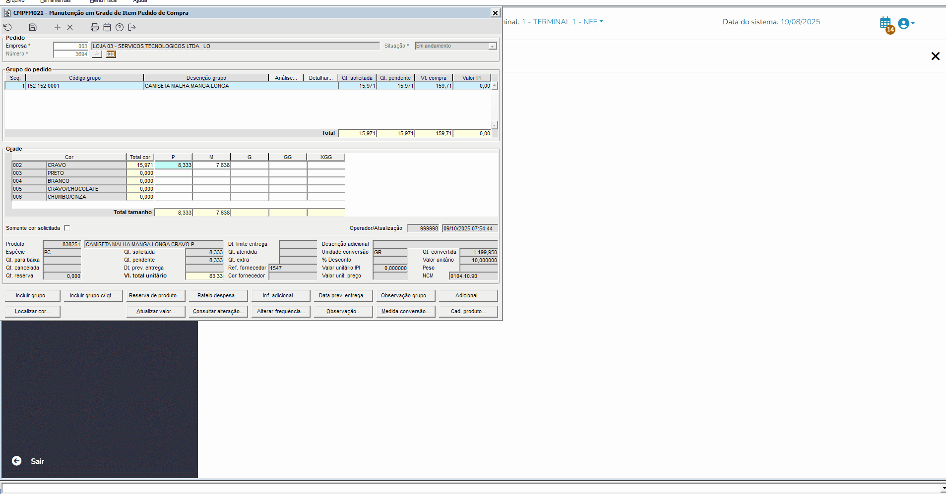 Gif01 - Demonstração da conversão de medidas sendo aplicada juntamente com a baixa do pedido e movimentação de kardex.