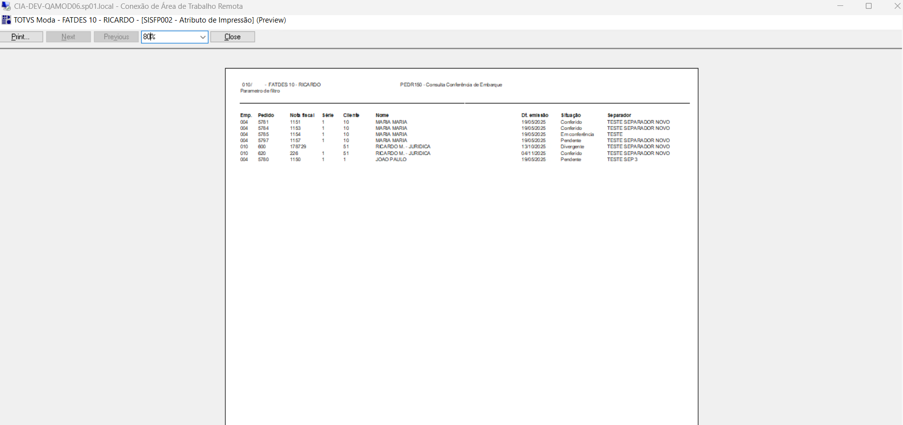 Caso o usuário escolha o tipo WINDOWS, será aberto uma tela de preview onde os dados poderão ser validados antes da impressão: