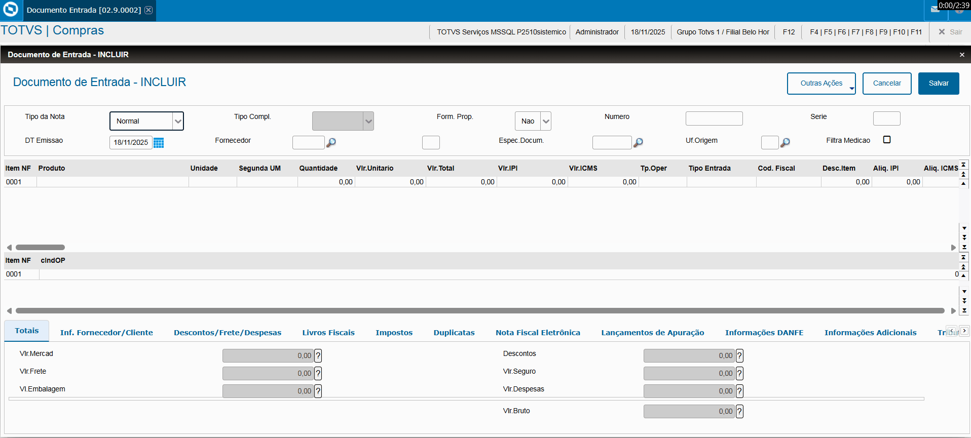As demais vinculações serão por tipo de Nota completa, sendo os documentos buscados a partir da tabela de Documento de Entrada (SF1).