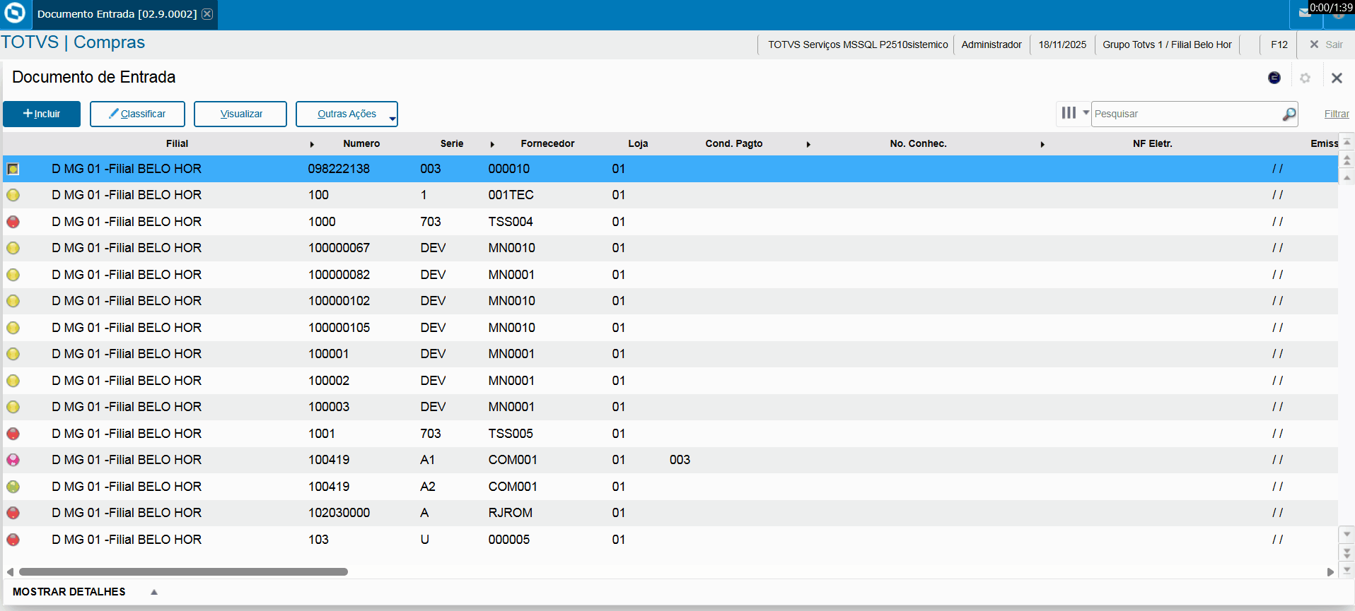 Caso nenhum filtro seja informado, o sistema realizará a busca automaticamente com base no fornecedor e loja com resultado limitado a 300 documentos.