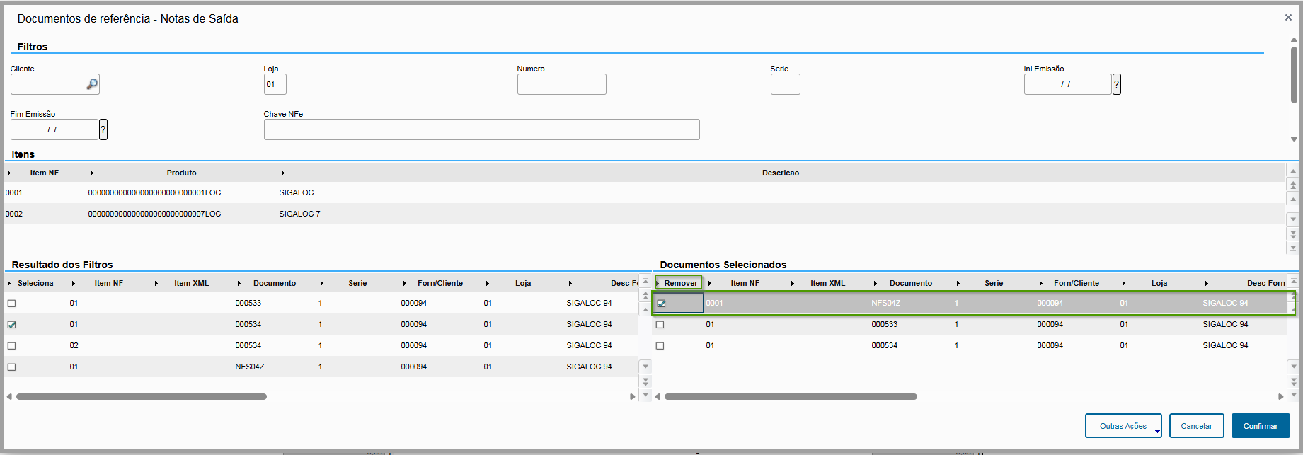Além disso - diferente do item anterior - como são buscadas notas de saída (SF2 / SD2), o campo Cliente fica disponível para edição, para que o usuário possa selecionar qual cliente deseja buscar a nota e realizar o vínculo.