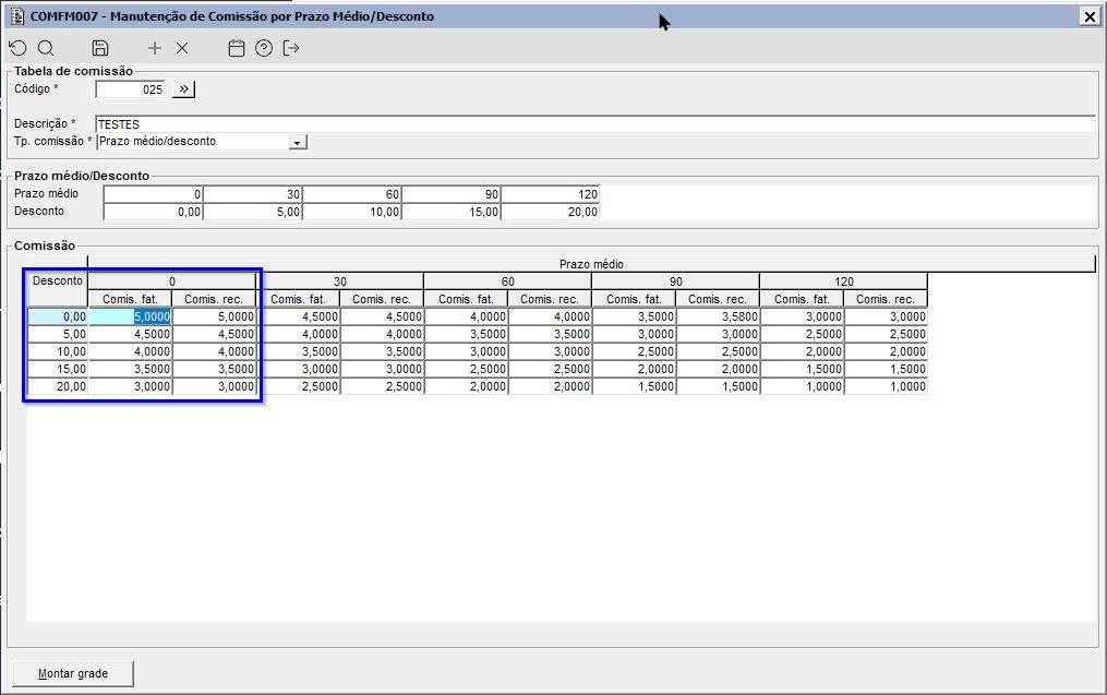 | Função: | Cálculo da comissão por tipo de desconto |