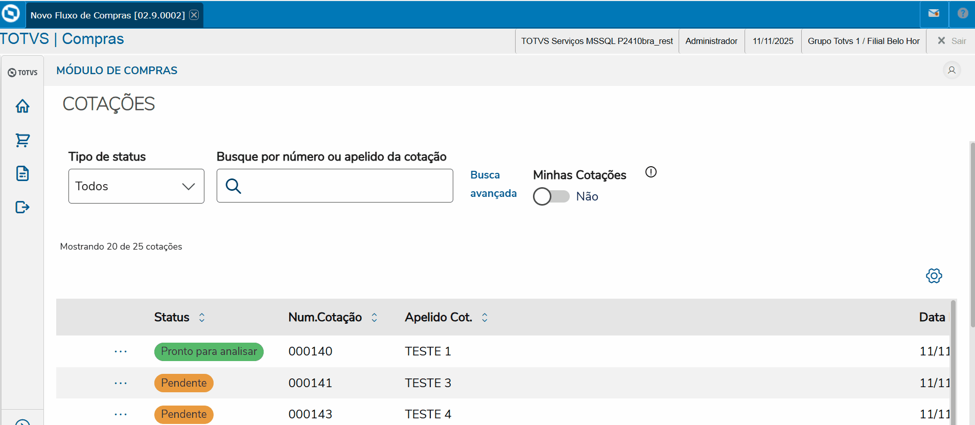 Para maiores informações, consulte a documentação de referência Novo Fluxo de Compras: Guia de Referência - Gestão de Compras - P12