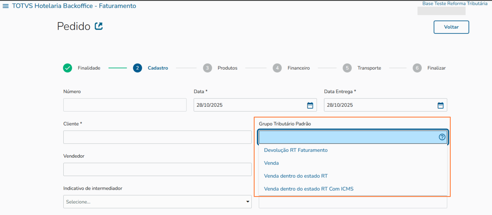 No módulo Back SaaS, alguns cadastros são cruciais para a adequação à Reforma Tributária. Detalharemos os ajustes necessários no cadastro de Grupo Tributário e na parametrização do Pedido.