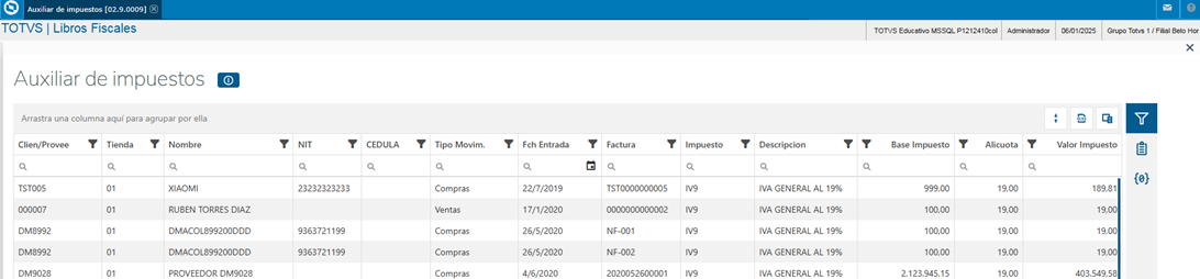 Al ejecutar el objeto backoffice.sv.fis.taxAnalysis.tlpp, mostrará la información de la siguiente manera: