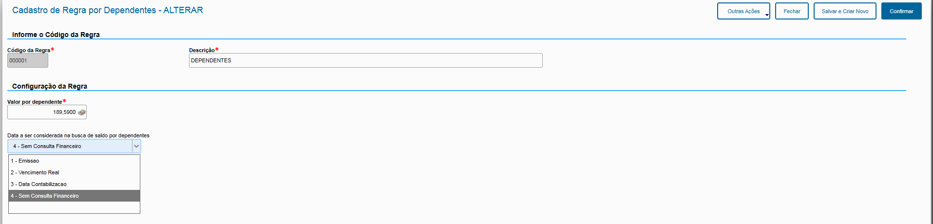 Caso tenha dúvidas sobre a criação de regra financeira, pode consultar o documento de referencia em: https://tdn.totvs.com/display/public/PROT/Configurador+de+Tributos+-+Regras+Financeiras