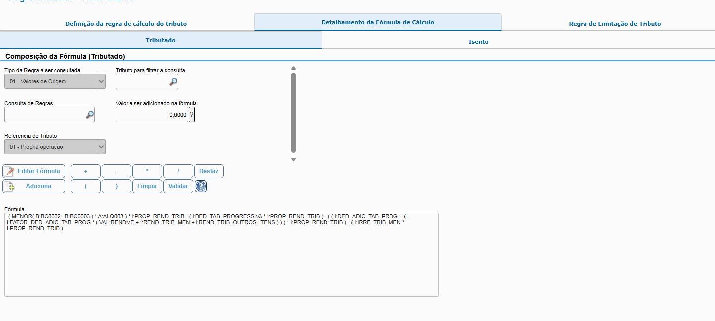 O tributo utilizado na regra de cálculo deve ser o "RENDME" (Id Tributo 000077):