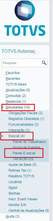 Ao acessar esta opção será exibido o menu das funcionalidades presentes no Painel eSocial, conforme imagem abaixo: