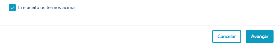 Verificando que o botão avançar só habilita quando marca o checkbox "Li e aceito os termos acima":