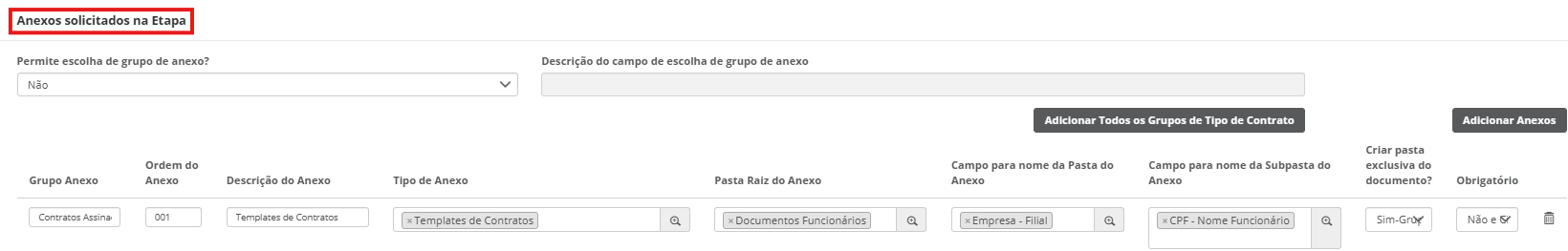 04.Dentro da Etapa 2000, navegue até a seção Anexos Solicitados na Etapa. Esta área concentra a gestão dos documentos que deverão ser apresentados ou validados durante o fluxo de assinatura.