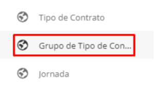 Siga os passos abaixo para criar, editar ou excluir Grupos de Tipos de Contrato: