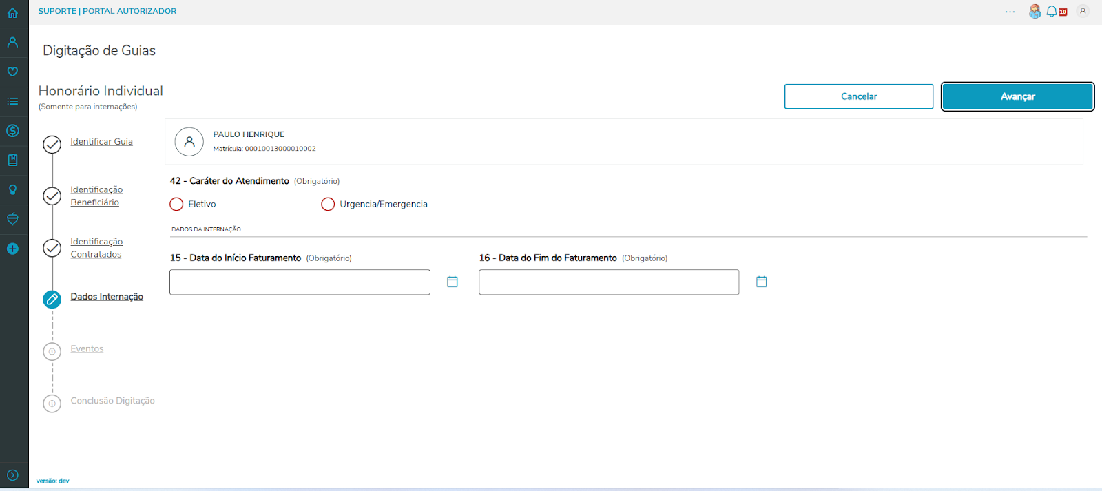 • Guias de Honorários: inclusão do campo Caráter de Atendimento na interface e na estrutura do arquivo XML de faturamento (Envio de Lote de Guias).