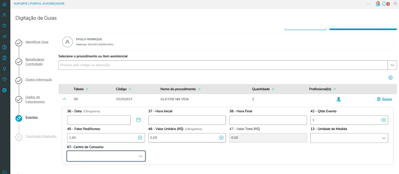 • Guias de Resumo de Internação e Outras Despesas: inclusão do campo Centro de Consumo na interface e na estrutura do arquivo XML de faturamento, obrigatório para eventos do tipo material ou medicamento (Envio de Lote de Guias).