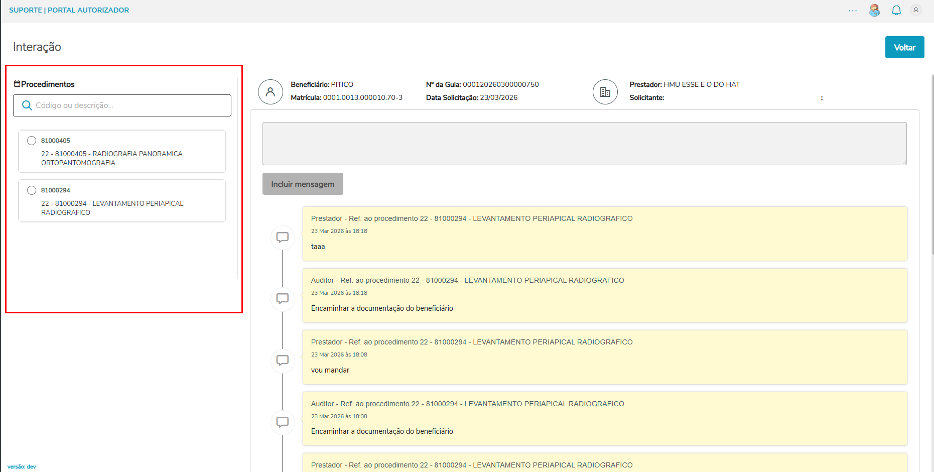 Filtro Dinâmico de Busca: Adicionado campo de pesquisa para localização rápida de procedimentos por código, otimizando o fluxo de atendimento em guias com múltiplos itens.
