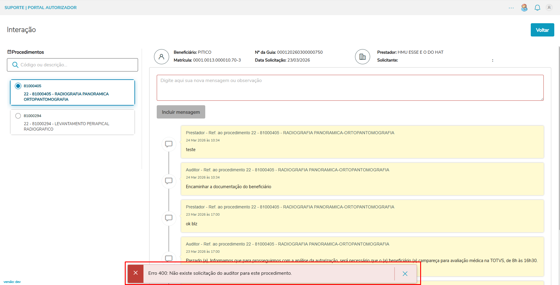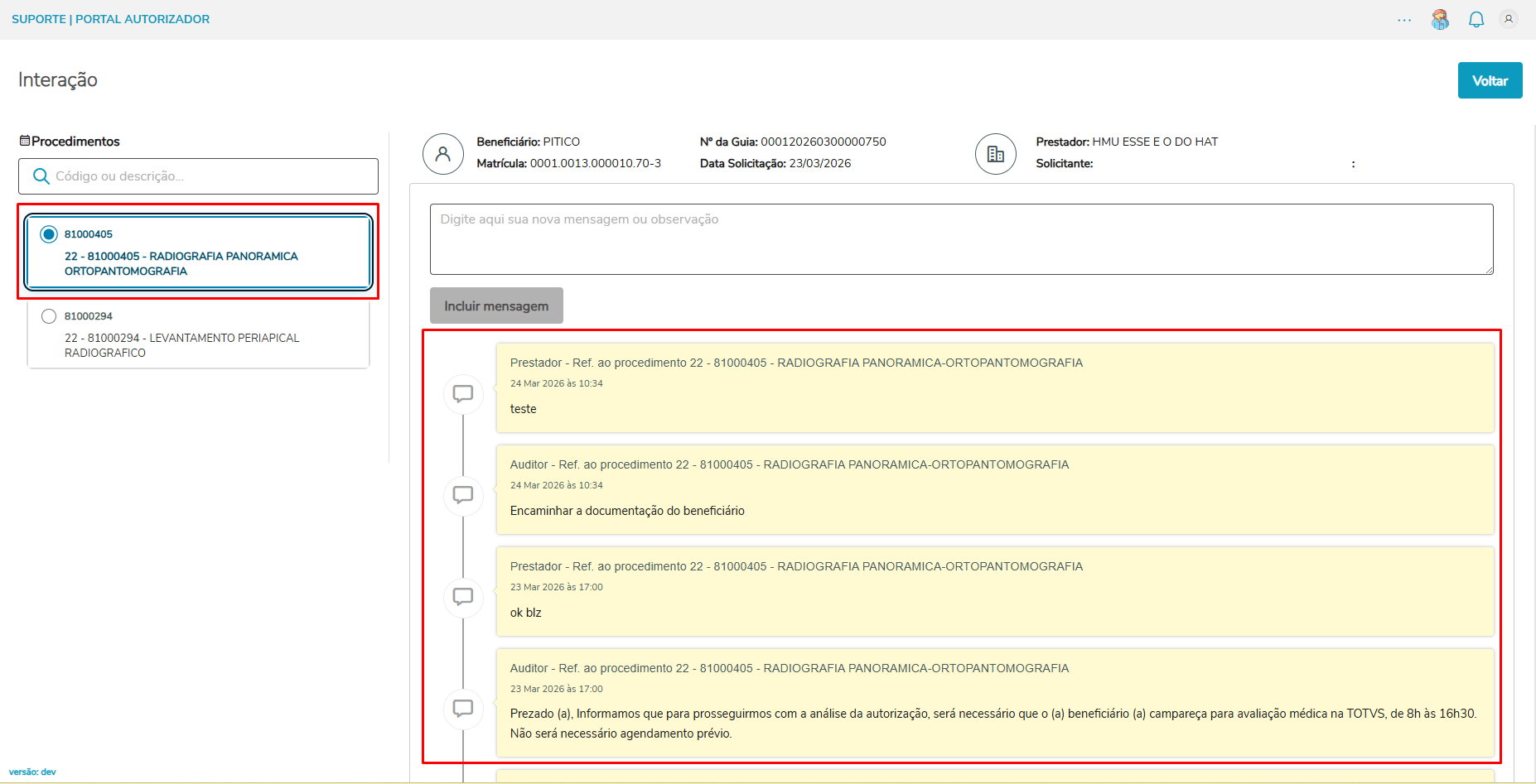 | Produto: | TOTVS Saúde Portal Autorizador |