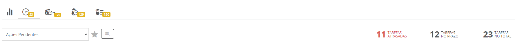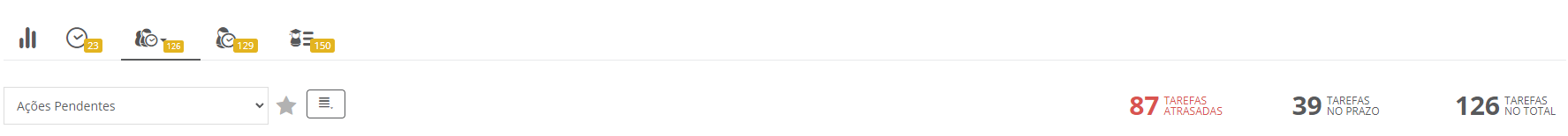 Os números exibidos na parte superior da janela são referentes ao grupo selecionado, ou seja, todas as tarefas que estão pendentes para esse grupo e não apenas para o usuário autenticado ou que está sendo substituído.